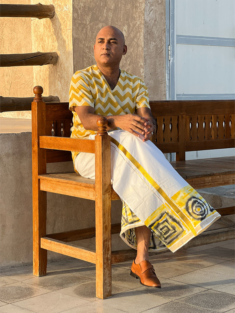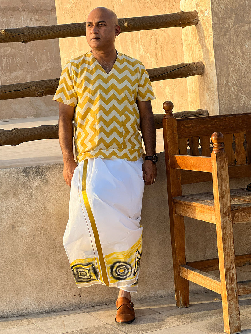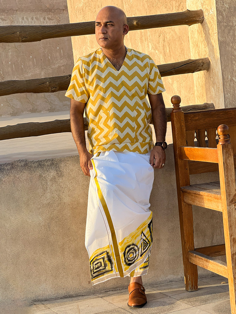 Colour bleed Design Dhoti/ Mundu