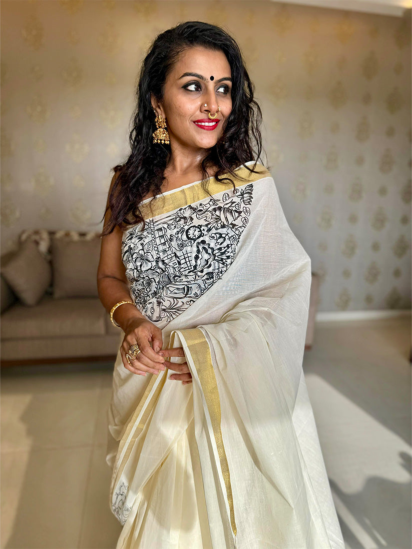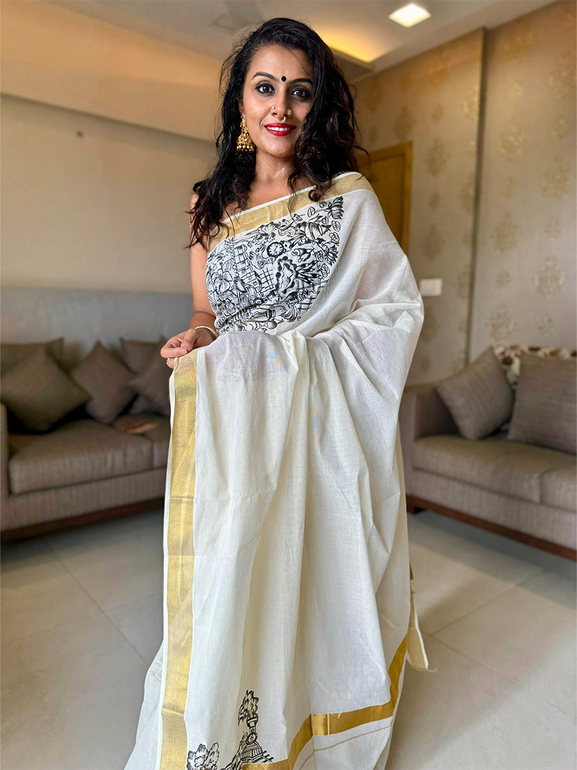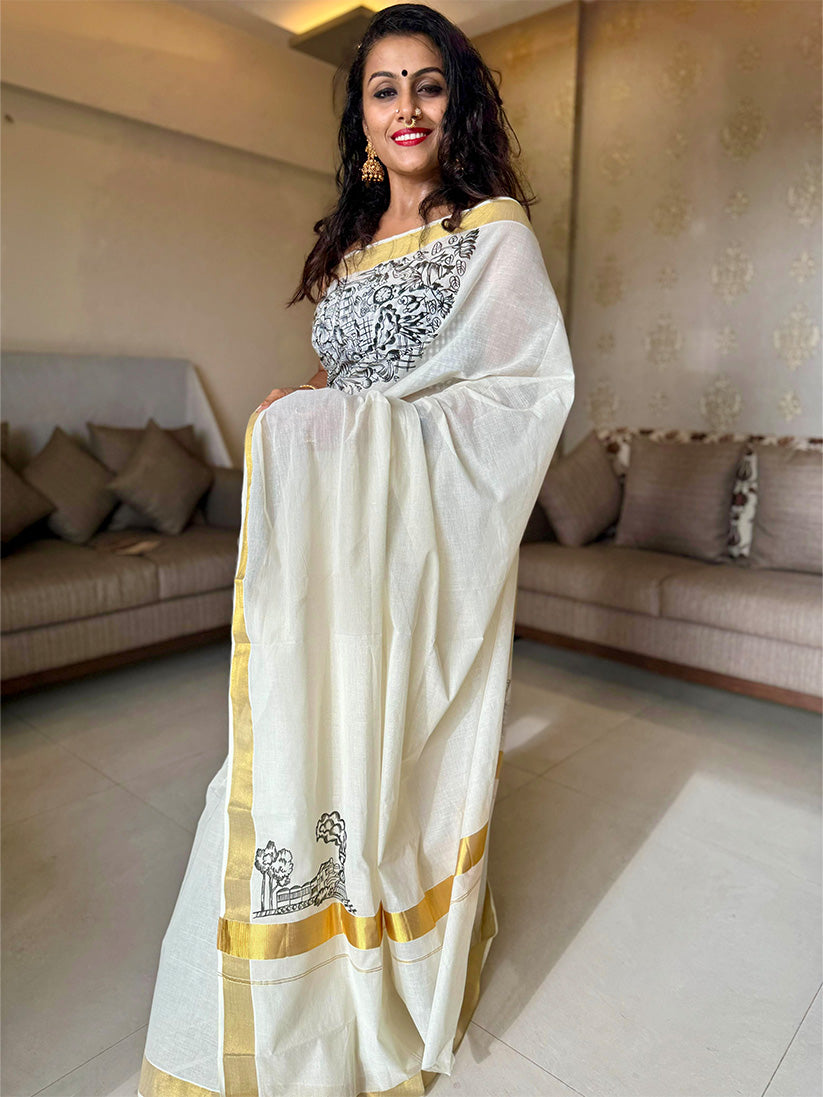 Kerala cotton saree - 6 Meter length