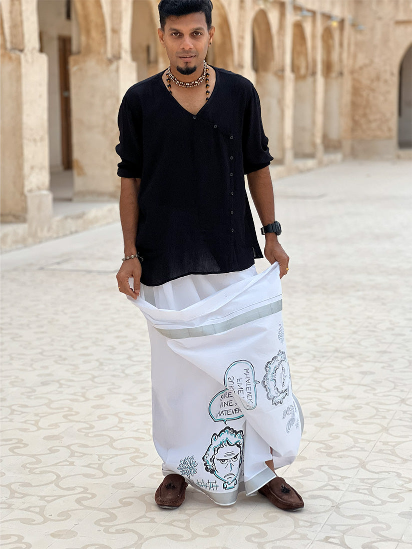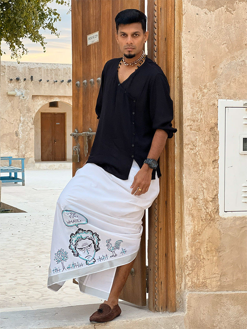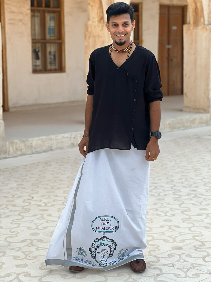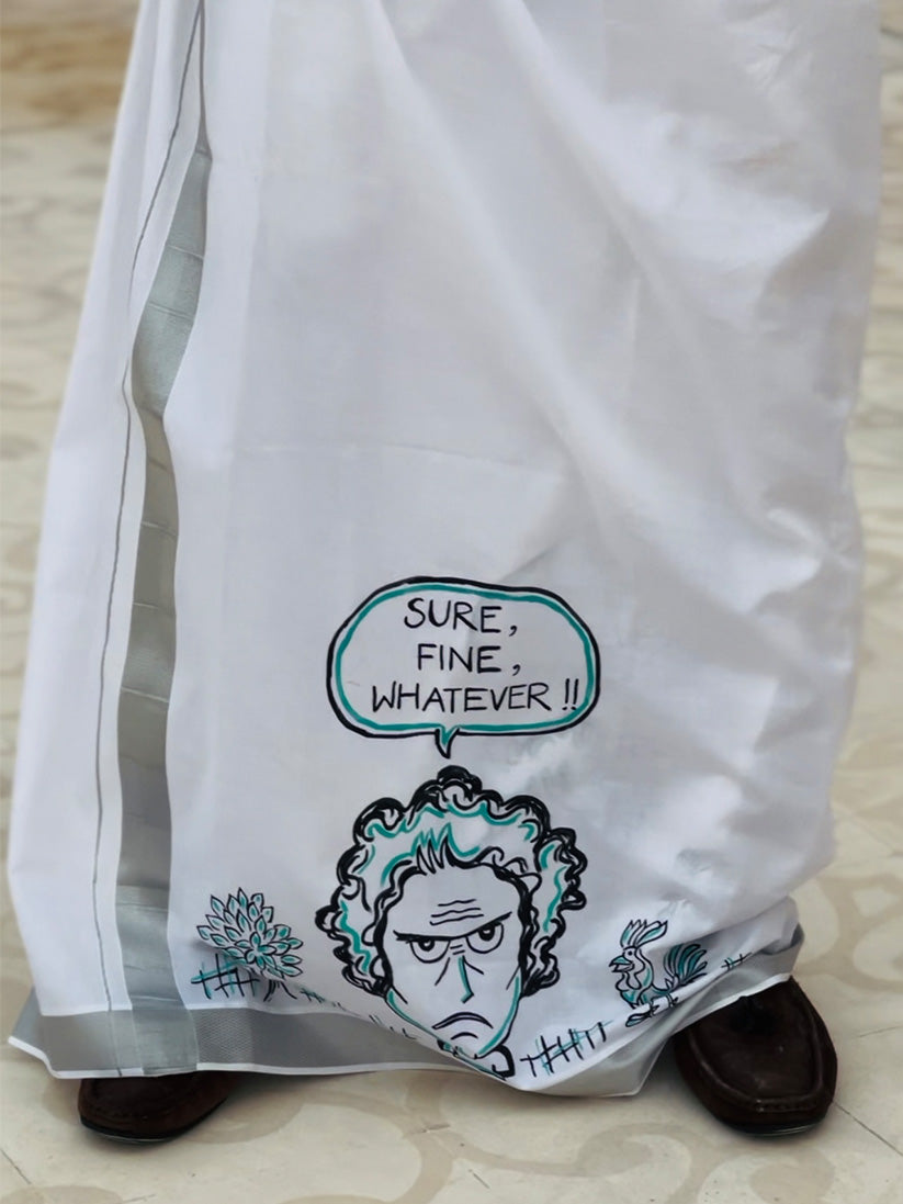 "Sure Fine Whatever" Design Dhoti/ Mundu