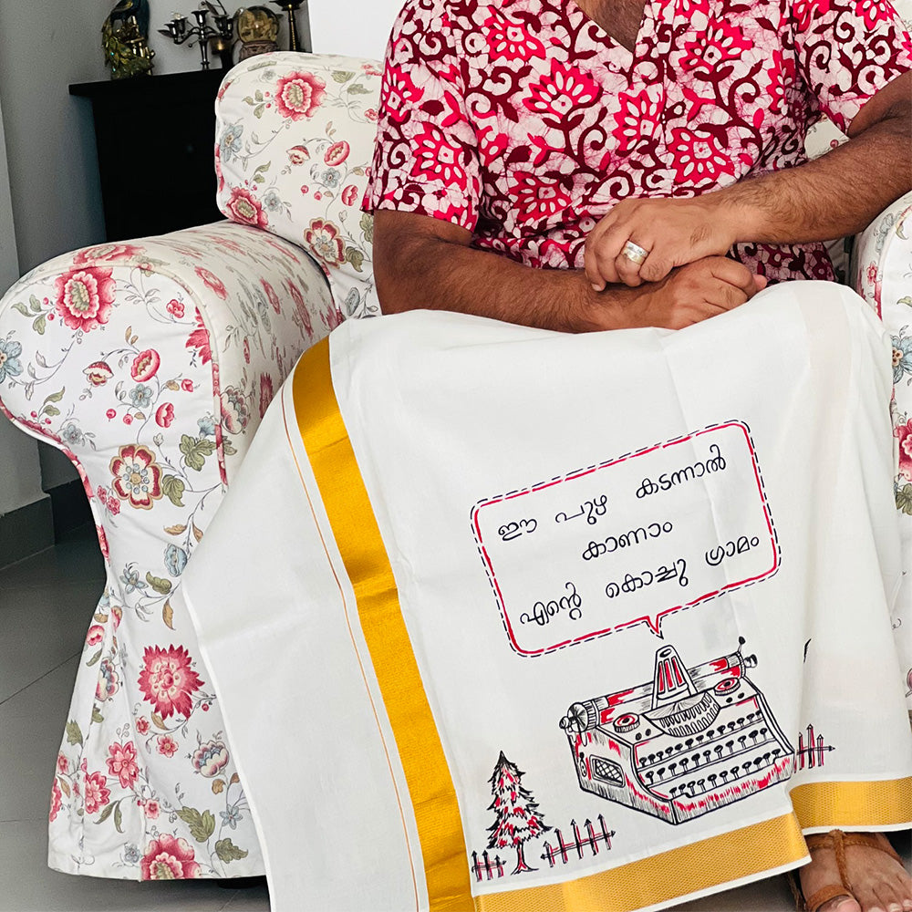 "Ee puzha kadnnaal kaanaam" Design Dhoti/ Mundu