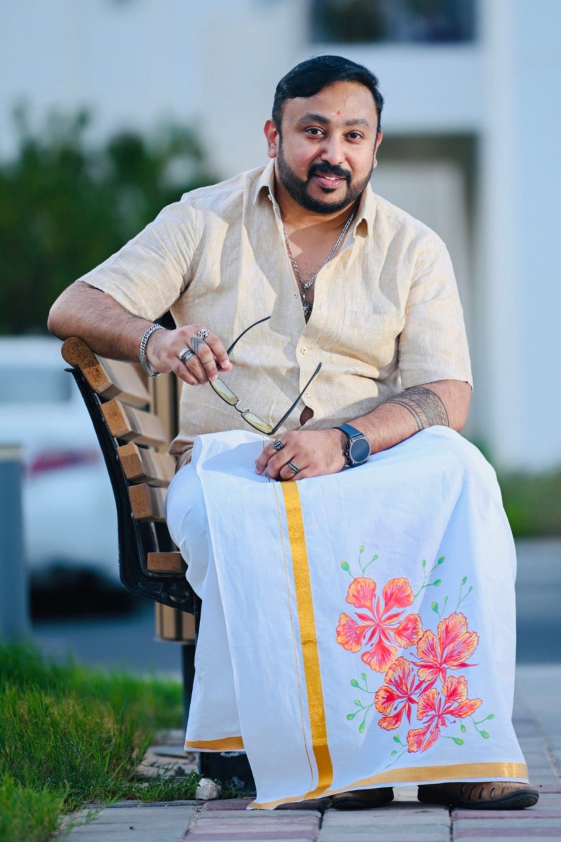 Gulmohar design Dhot/ Mundu