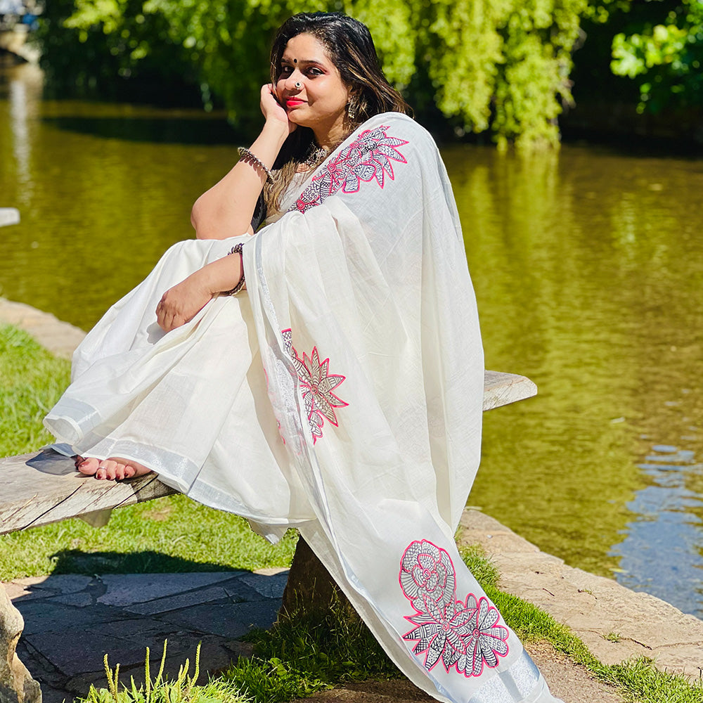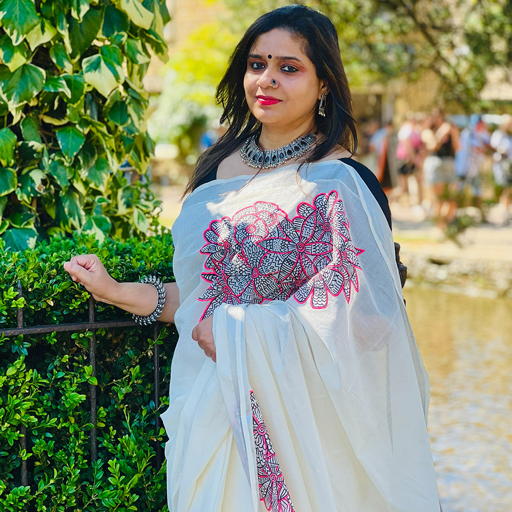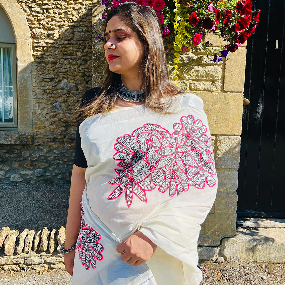 Flower in Mural Design Saree