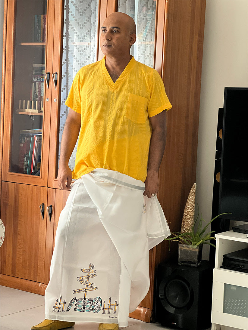 Vintage Car Design Dhoti/ Mundu